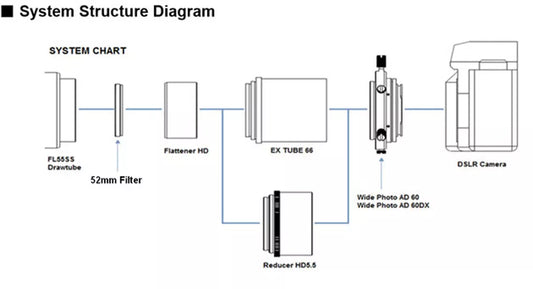 Kit réducteur HD et tube allonge EX TUBE 66 pour réfracteur FL55SS — couverture image 44 mm, F4,3 pour l'astronomie - Vixen