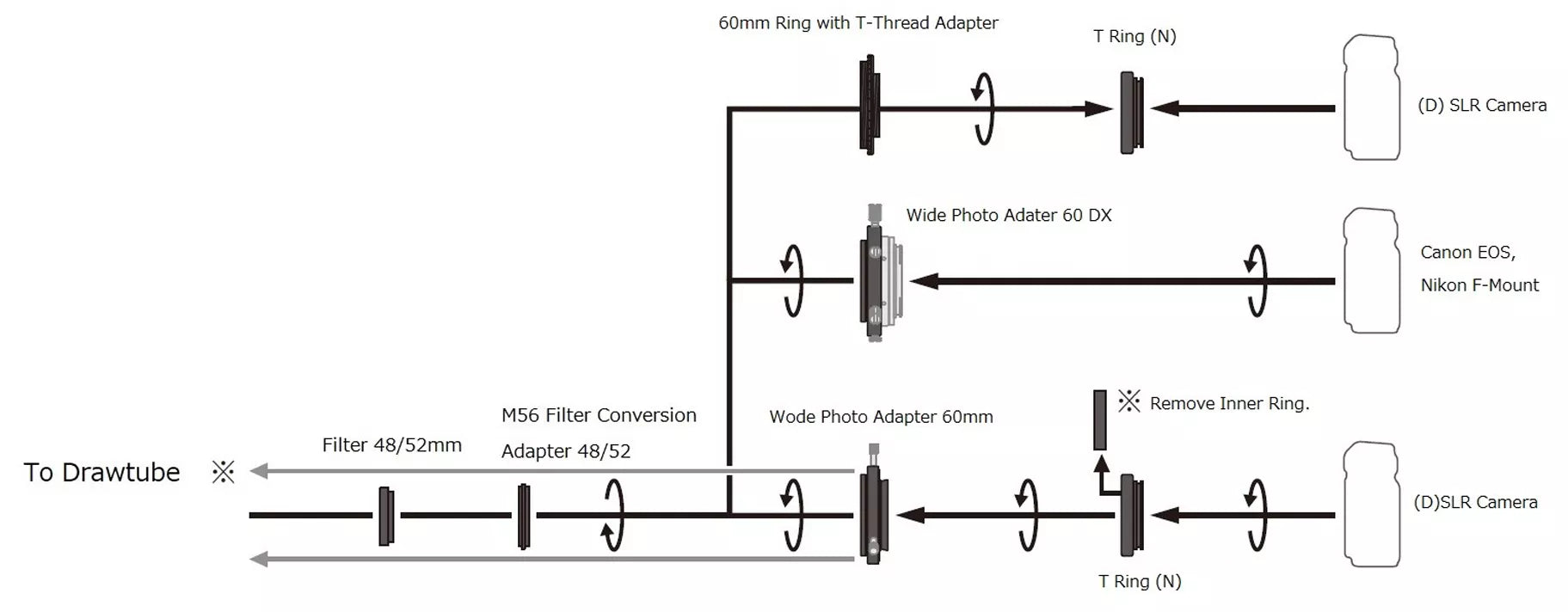 - Utilisable avec les adaptateurs Wide Photo AD 60DX, Wide Photo AD 60 mm, bague 60 mm avec filetage en TAD et EA 60 mm à 50,8 mm