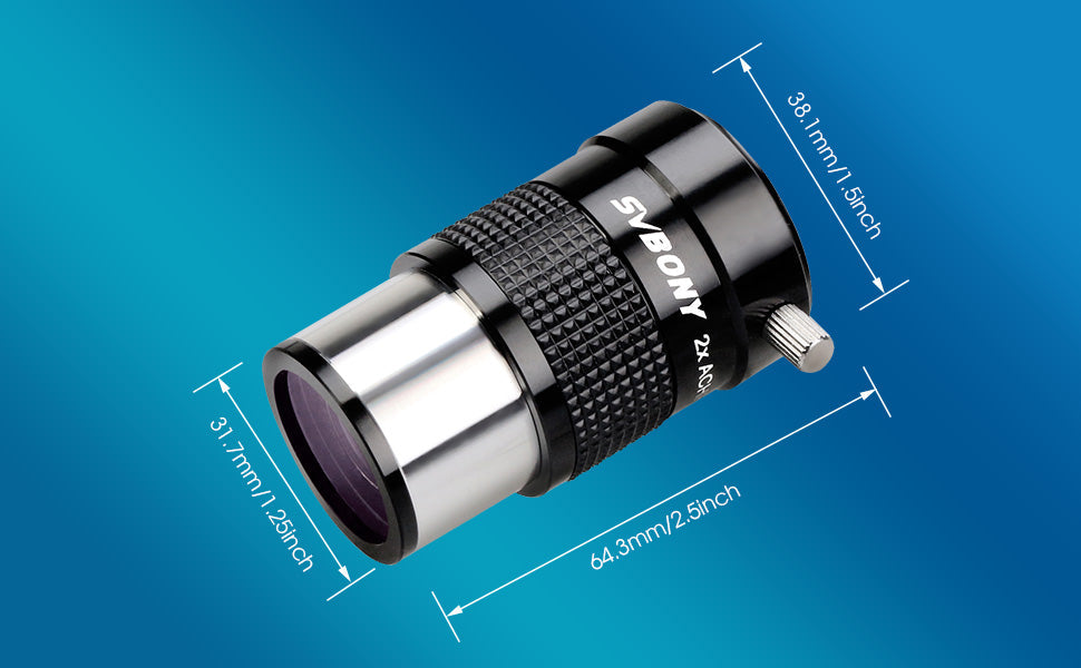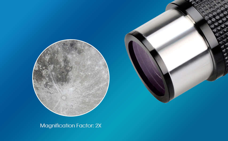 - Double la magnification de vos oculaires pour une vue plus détaillée des planètes et de la surface lunaire