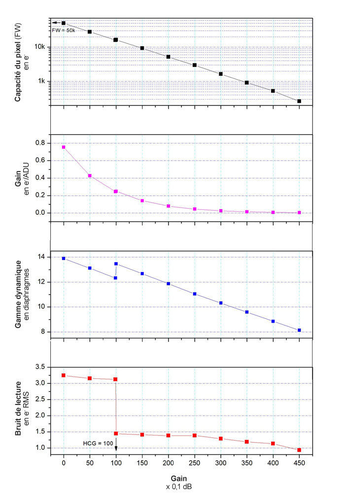 - Grande capacité électronique des pixels pour une meilleure saturation et dynamique