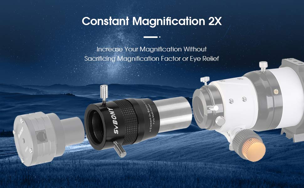Barlow 2x 4-éléments pour l'observation planétaire et la photographie - SVBONY