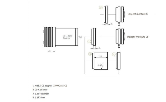 Adaptateur Sony NEX pour objectifs manuels sur caméras ZWO ASI - ZWO