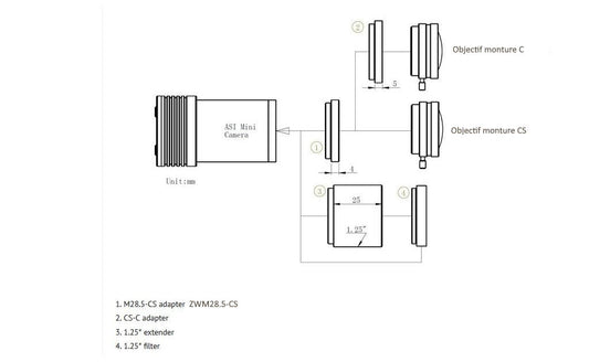 Adaptador ZWO M28.5 a CS (4mm) - ZWO