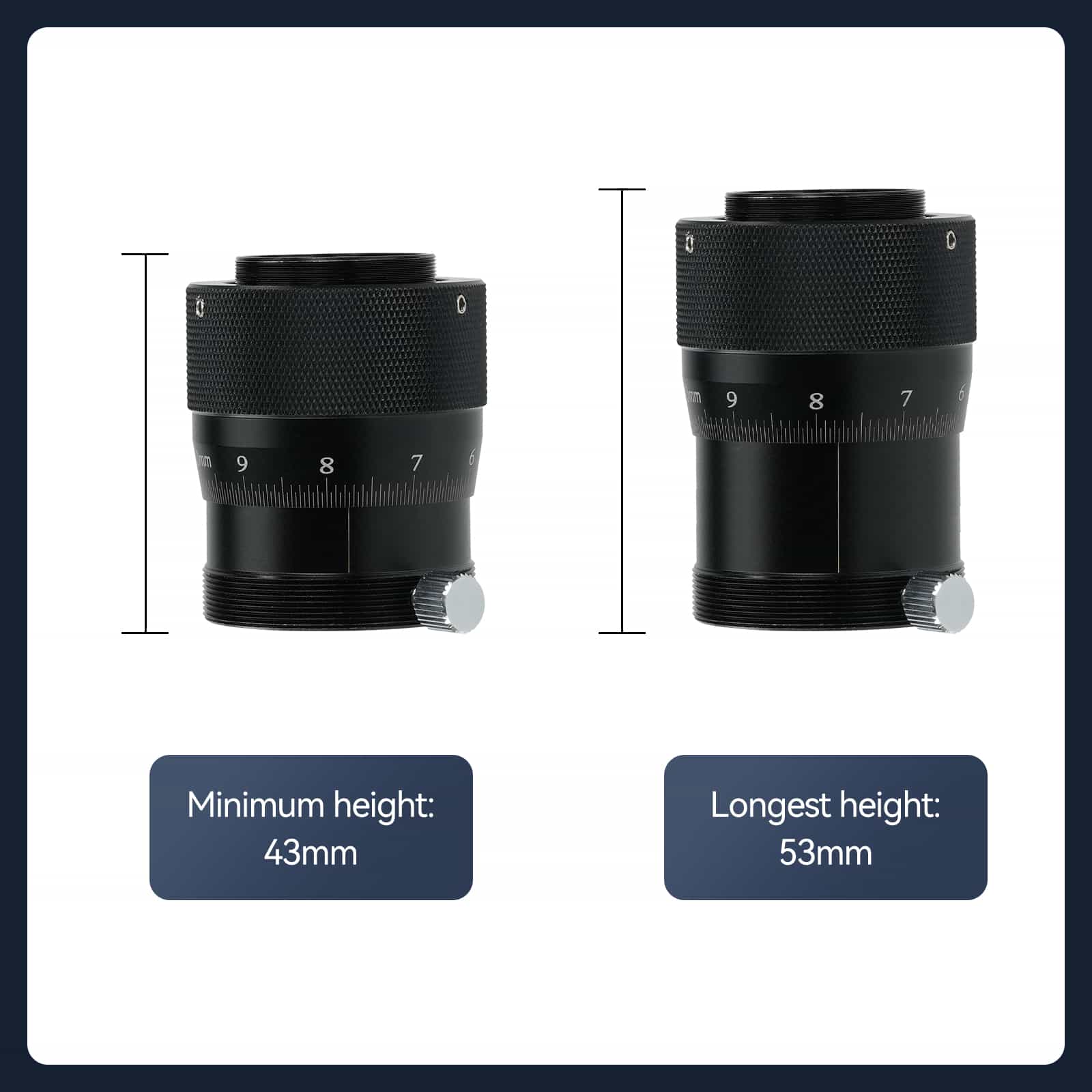 Pendant le réglage de la mise au point, les accessoires attachés conservent leur orientation et ne tournent pas. La position exacte de la mise au point peut être fixée avec un écrou de serrage.